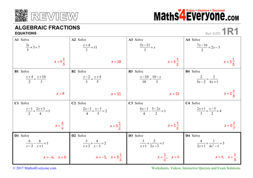 Equations With Algebraic Fractions Worksheet With Solutions Teaching Resources