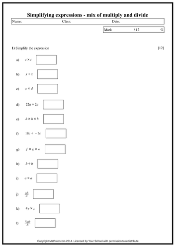 Simplifying Expressions Multiply And Divide Teaching Resources